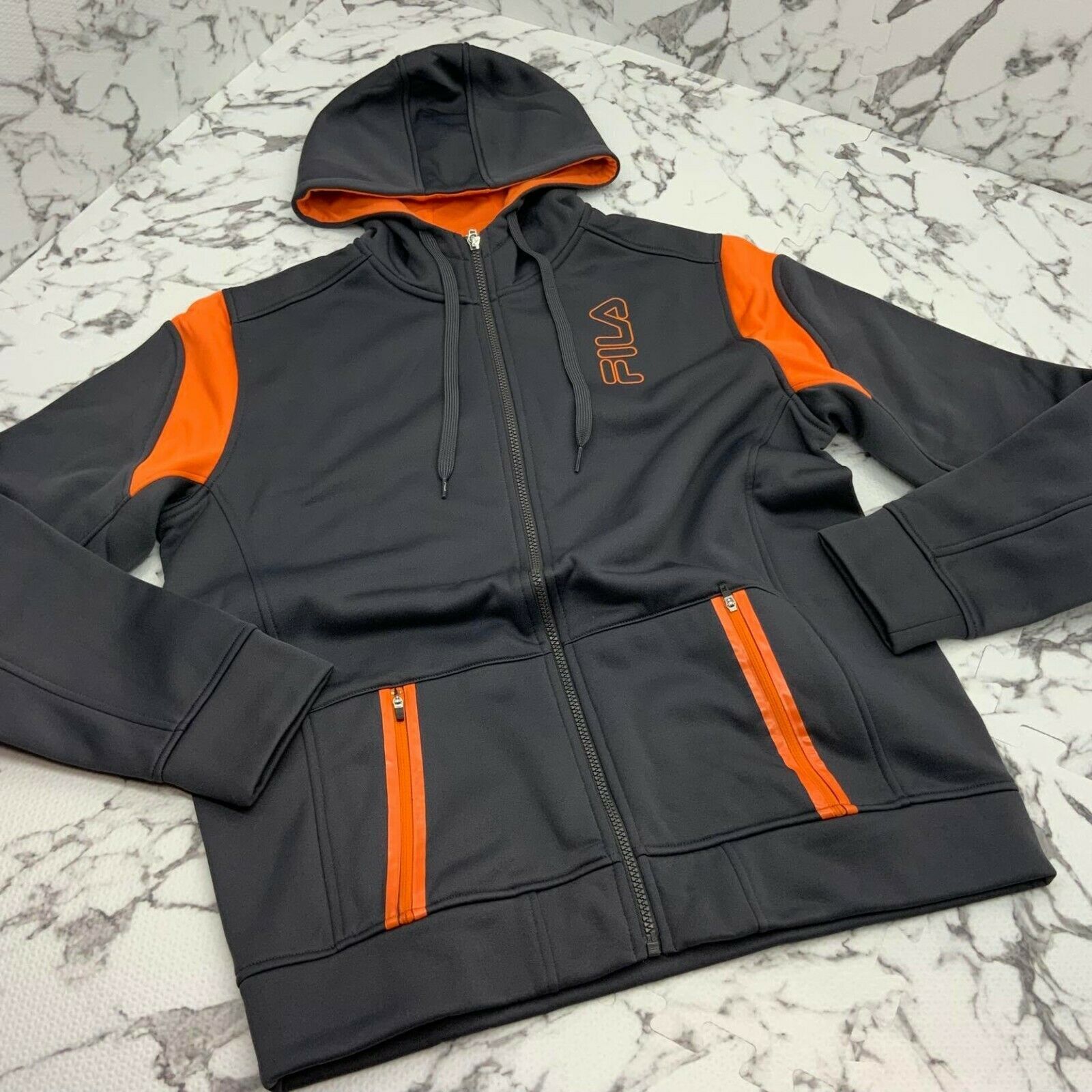 - Men’s Fila Grey Orange Full Zip Track Hoodie Jacket