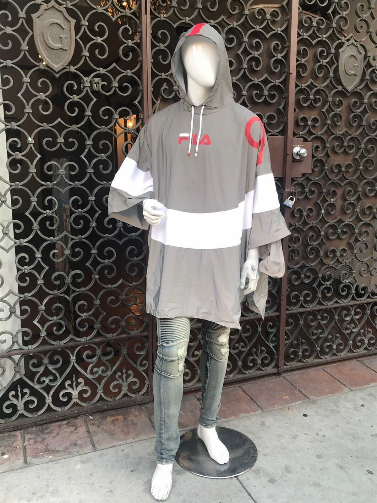 - Men's Fila Grey | White Rain Poncho Coat with Carry Bag