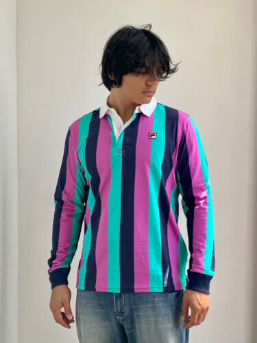- Men’s Fila Navy | Fuchsia |Turquoise Button Down Long Sleeve Polo Shirt NWT