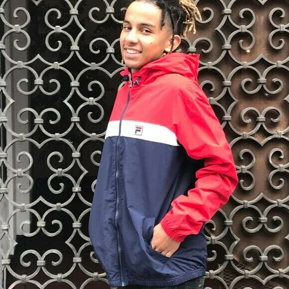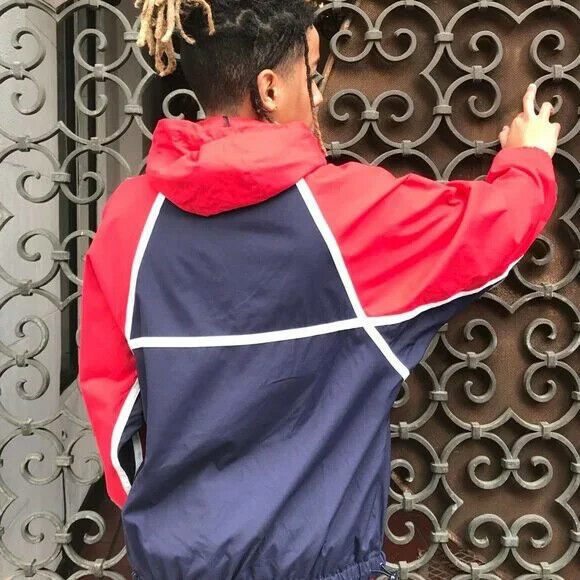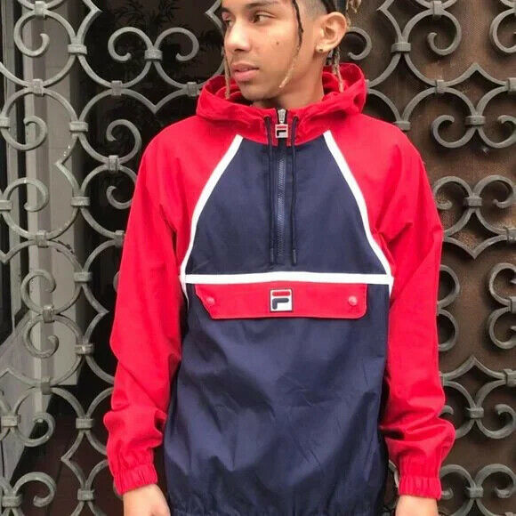 - Men's Fila Red Navy White Windbreaker Hooded Jacket