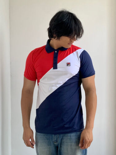 - Men’s Fila Red White Navy Short Sleeve Button Down Polo Shirt