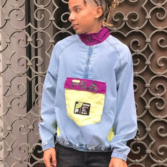 - Men's Fila Sandblast Purple Lime Green Pullover Denim Jacket