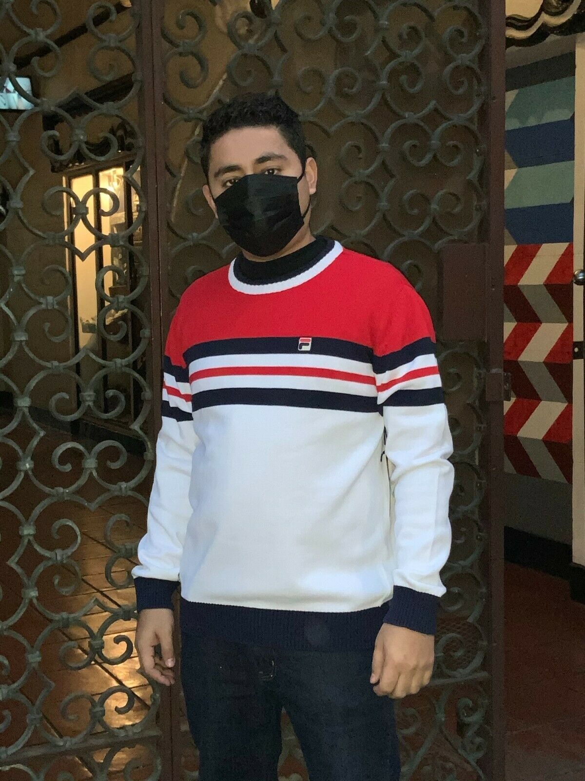 - Men's Fila White Red Navy Crewneck Sweater