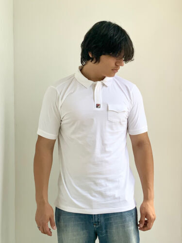 - Men’s Fila White Short Sleeve Button Down Polo Shirt NWT