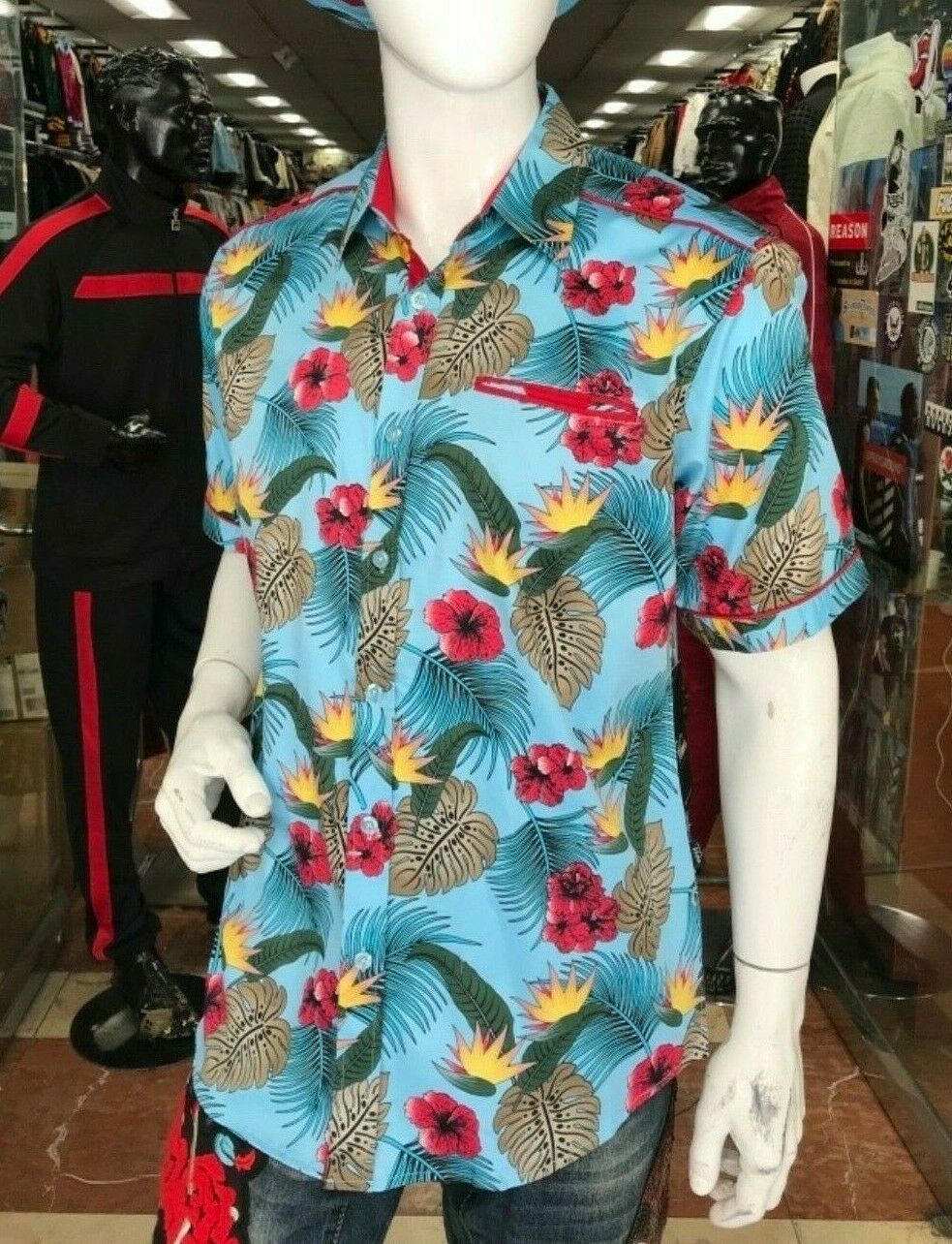 - Men's Hawaiian Blue Short Sleeve Button Down Shirt
