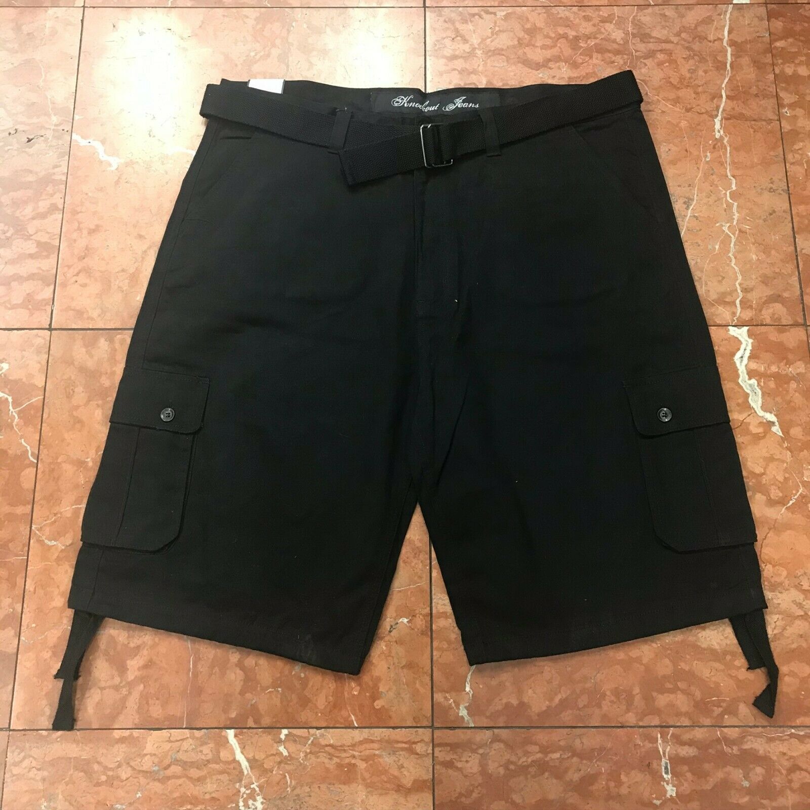- Men's Knockout Jet Black w/ Belt Casual Denim Short