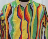 Men's LARGE Regal Wear Long Sleeve Shirt 100% Cotton Multi-color Wave-Stripe