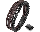 - Men's Leather and Stainless Steel Bracelet - Stylish Accessory for Men