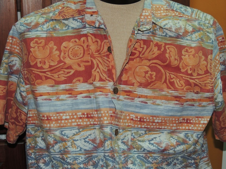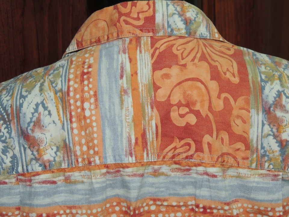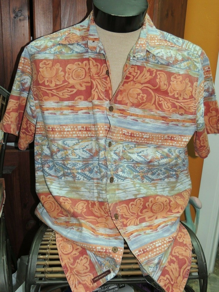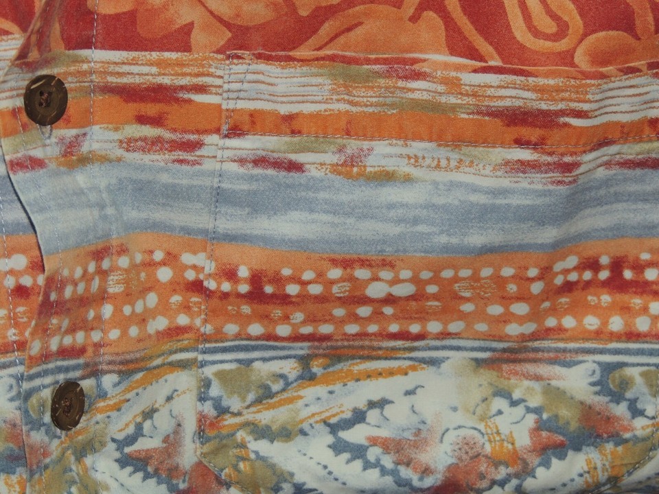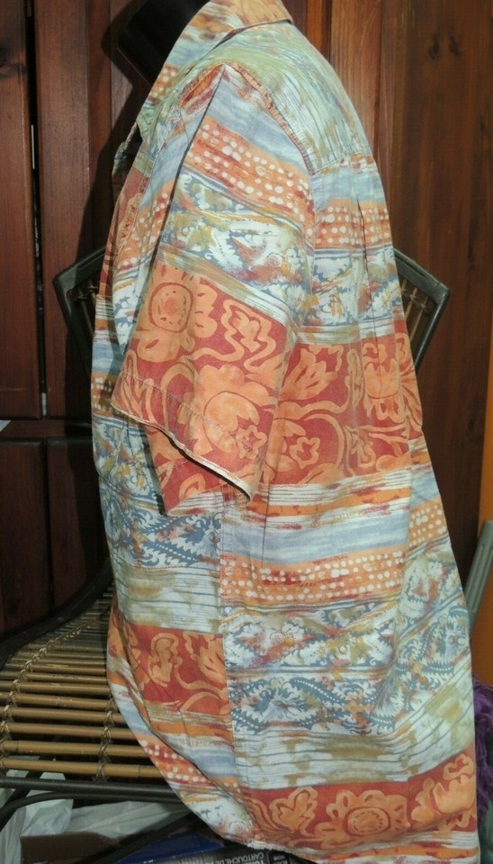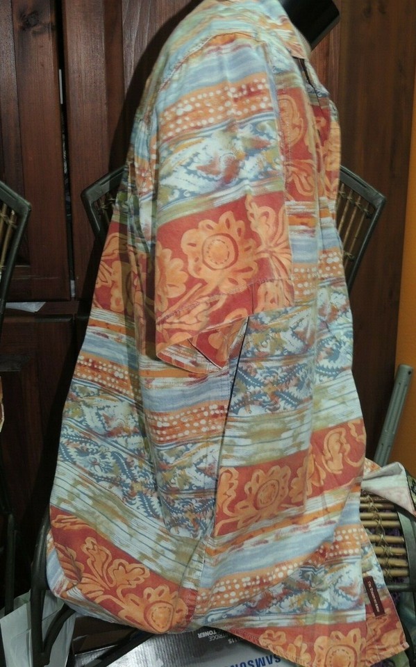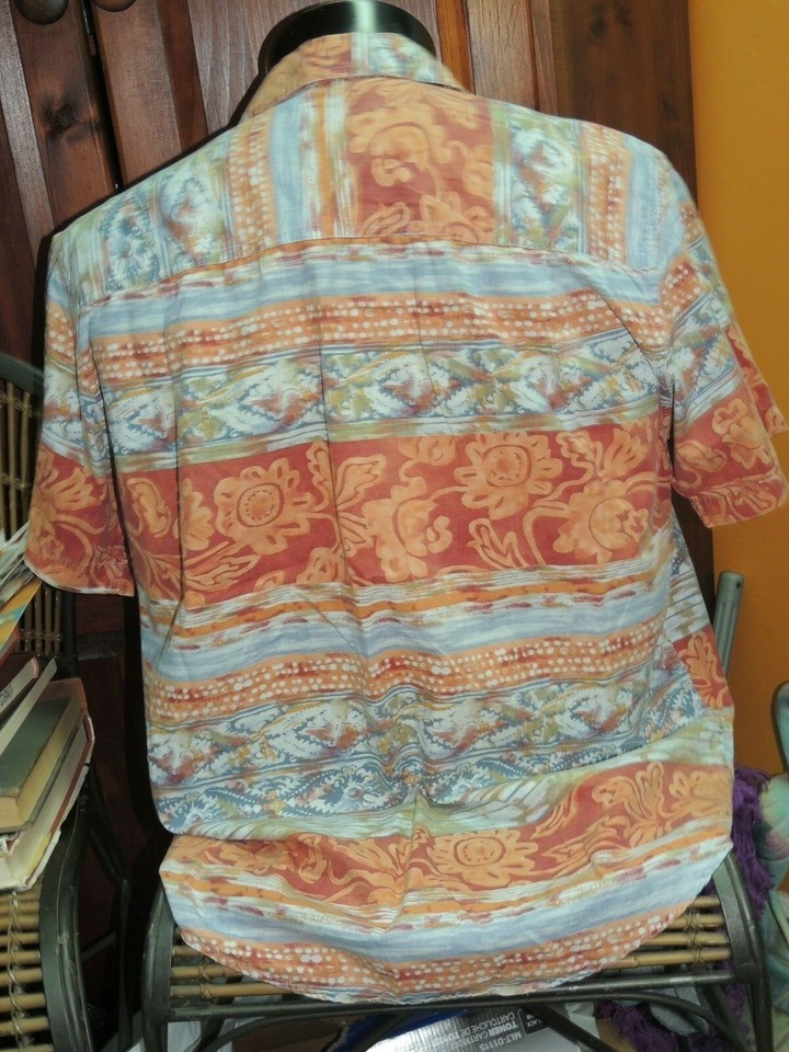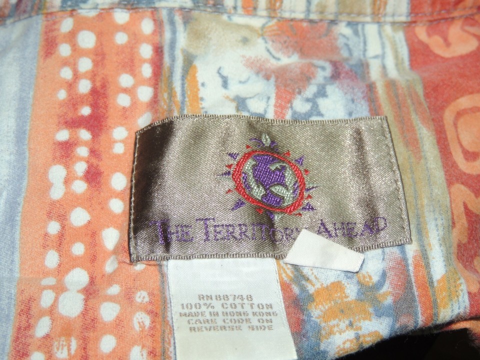 - Men's MED The Territory Ahead Short Sleeve Shirt 100% Cotton Red Blue Orange Prt