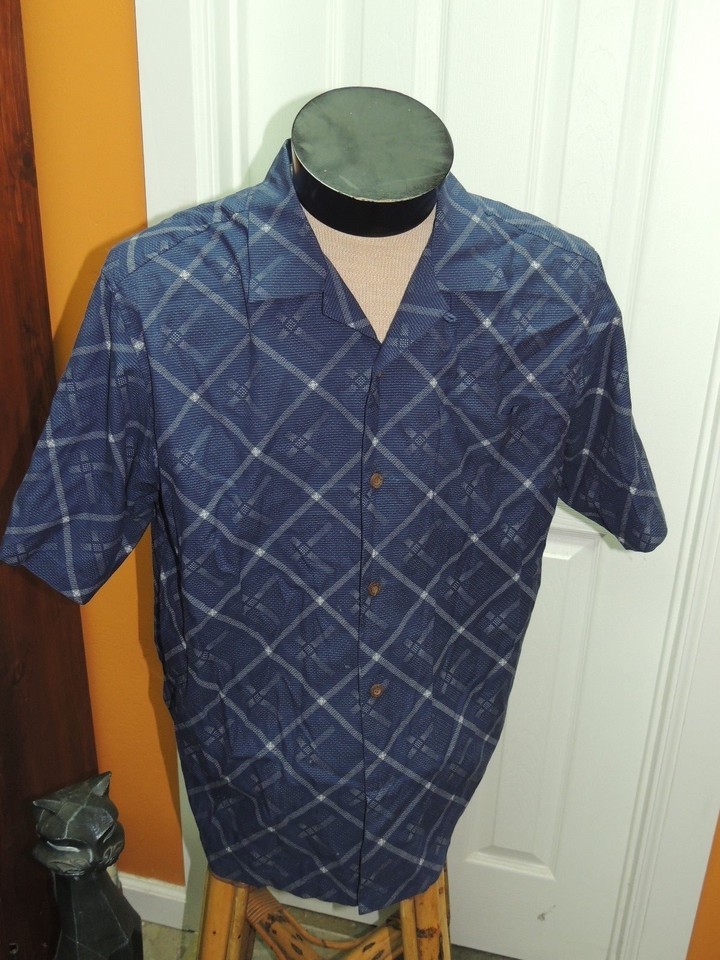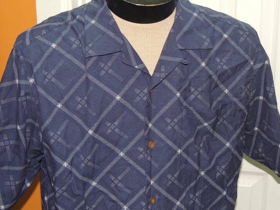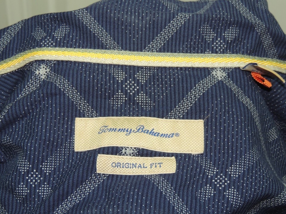 - Men's MED Tommy Bahama Short Sleeve Hawaiian Shirt Silk Blend BLUE white diamond
