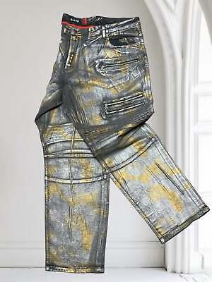 Men's Makobi Big Tall Silver | Gold Foil Denim Pants NWT