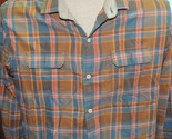Men's MED Tommy Bahama Long Sleeve Shirt 100% Cotton GRAY PINK ORANGE plaid
