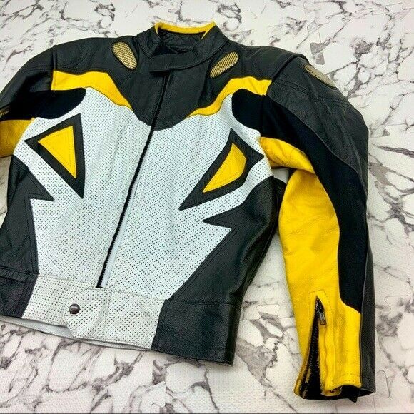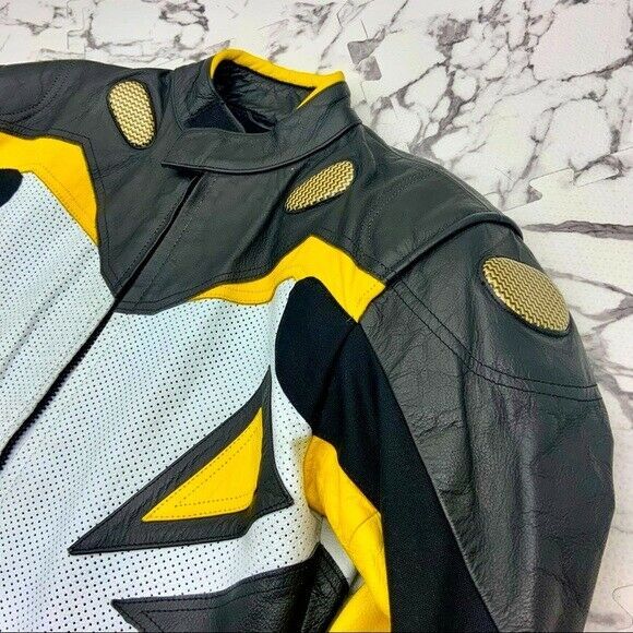 - Men's Motorcycle Black | Yellow | White 100% Genuine Leather Jacket