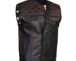 - Men's Motorcycle Vest Classic Black Leather USA Flag Liner Vest LKM3782