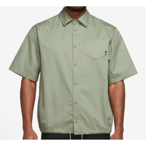 - Men's Nike Club Short Sleeve Button Up Shirt Green Size Large