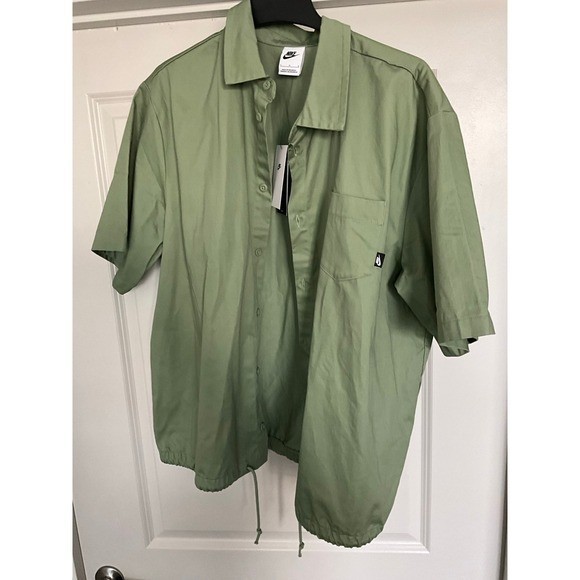 Men's Nike Club Short Sleeve Button Up Shirt Green Size Large