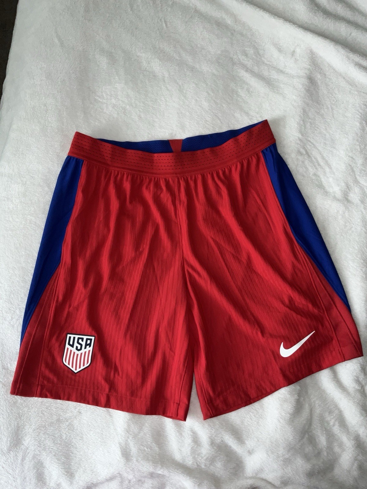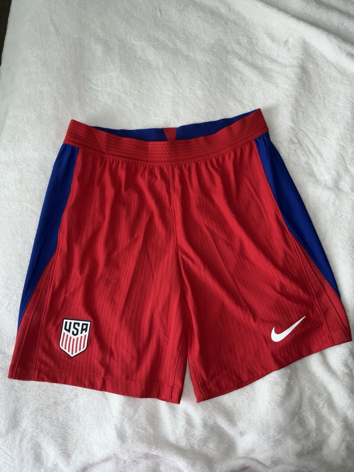 The Men's Nike Dri Fit ADV Team USA Shorts are a patriotic and athletic piece of activewear designed for men. These red shorts feature the iconic Nike brand logo and are ideal for various active occasions. The shorts come in size L and are perfect for showing support for Team USA while staying comfortable and stylish during workouts or sports activities.