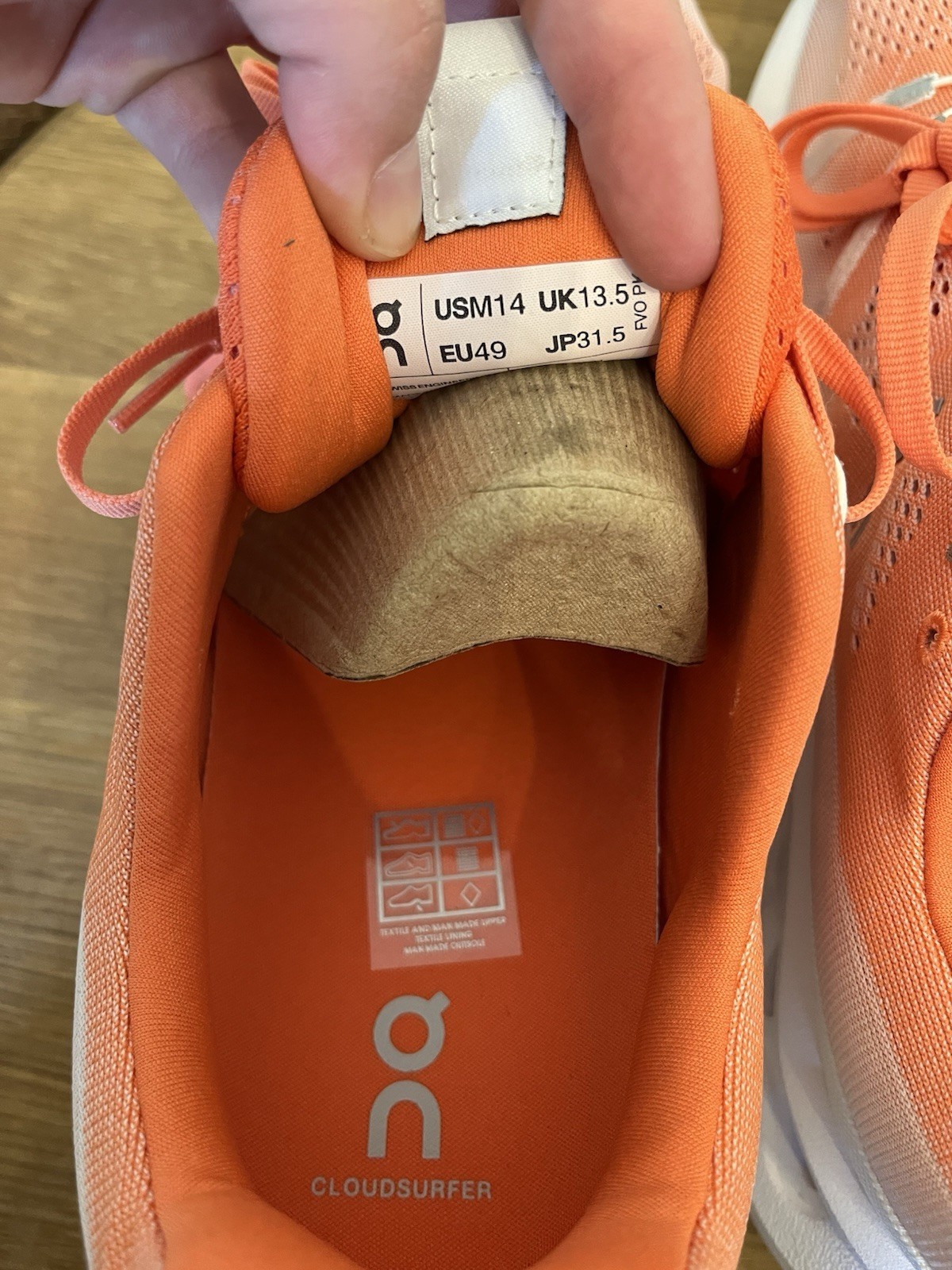 Men’s On Cloudsurfer - Size 14.0 - Orange/White