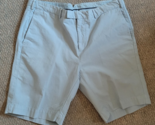 These shorts are in excellent used condition. There are no holes or stains that I found. The buttons and zipper work well. The size is 34 slim fit. Measurements are approximately: Length: 19 inches. Waist: 18 inches. Inseam: 9 inches. Rise: 11 inches.