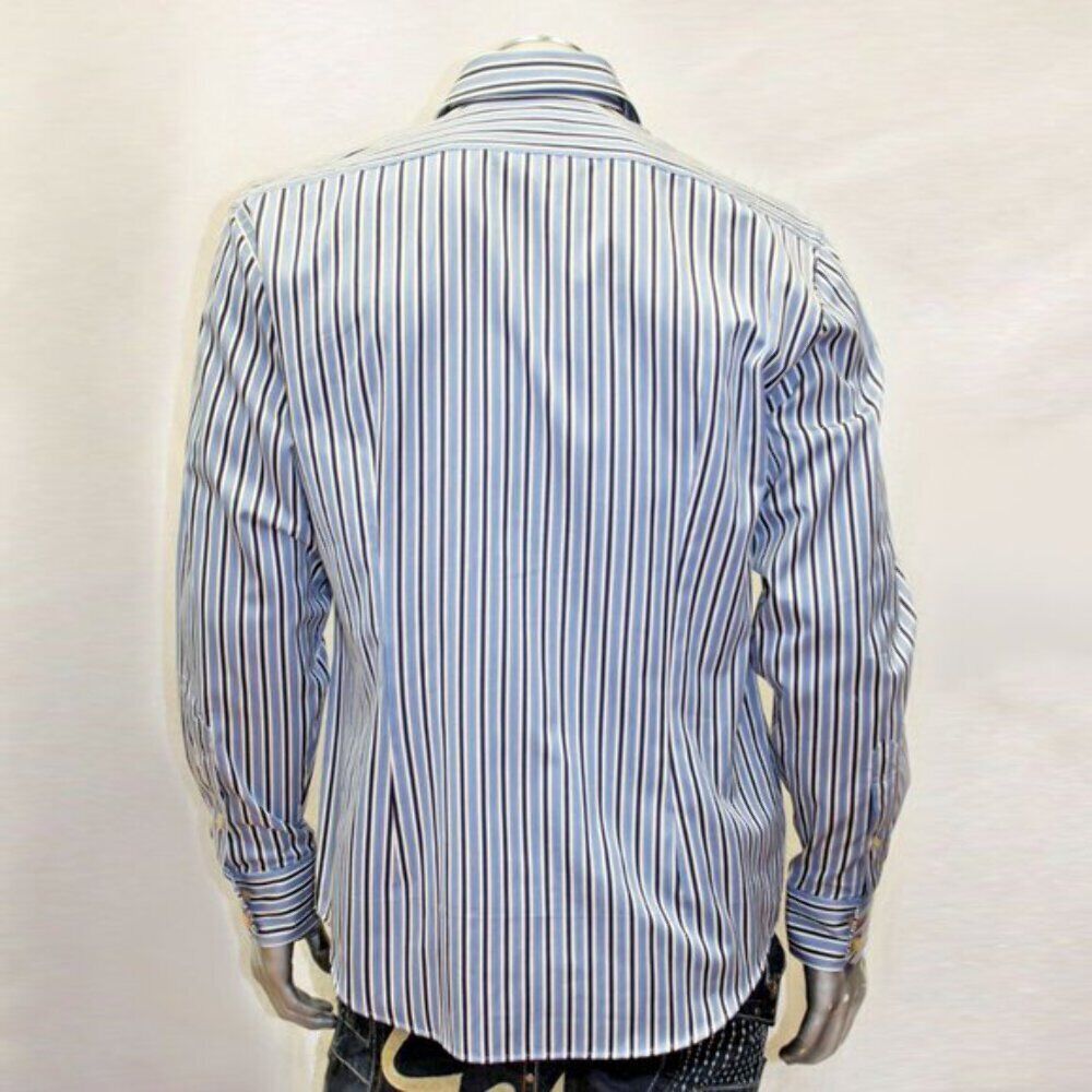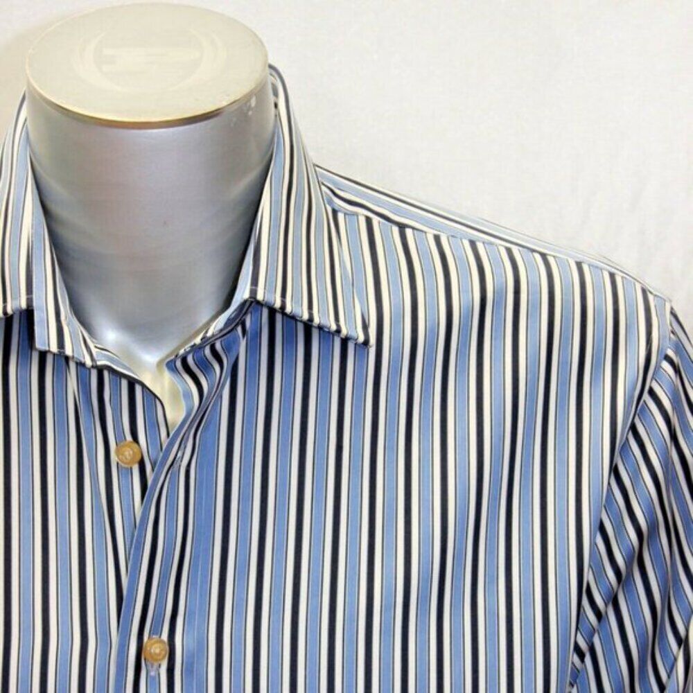 - Men's Rufus Pinstripe Navy | Lt.Blue | White Button Down Long Sleeve Shirt NWT