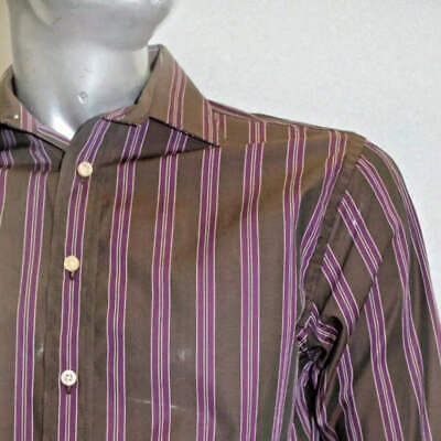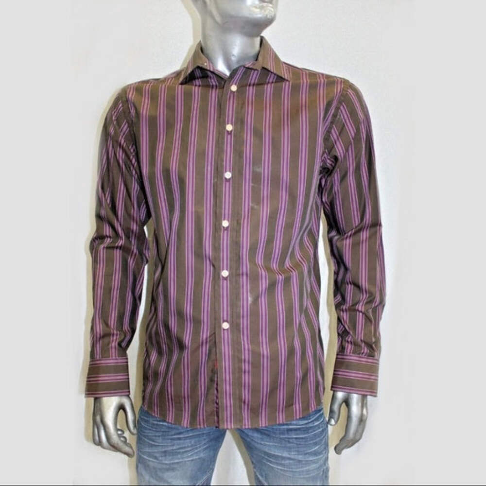 - Men's Rufus Striped Brown | Eggplant Long Sleeve Button Down Shirt NWT