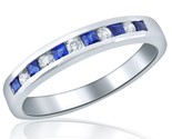 This stunning men's wedding band is a perfect way to symbolize your love and commitment. The band is made of 14k white gold and features a row of round cut 5 colorless diamonds and princess cut 6 blue sapphires in channel setting. The band width is 3.3 mm. The total carat weigh is 0.30 carat.