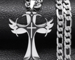 - Men's Stainless Steel Cross Silver Black Necklace & Bracelet Set