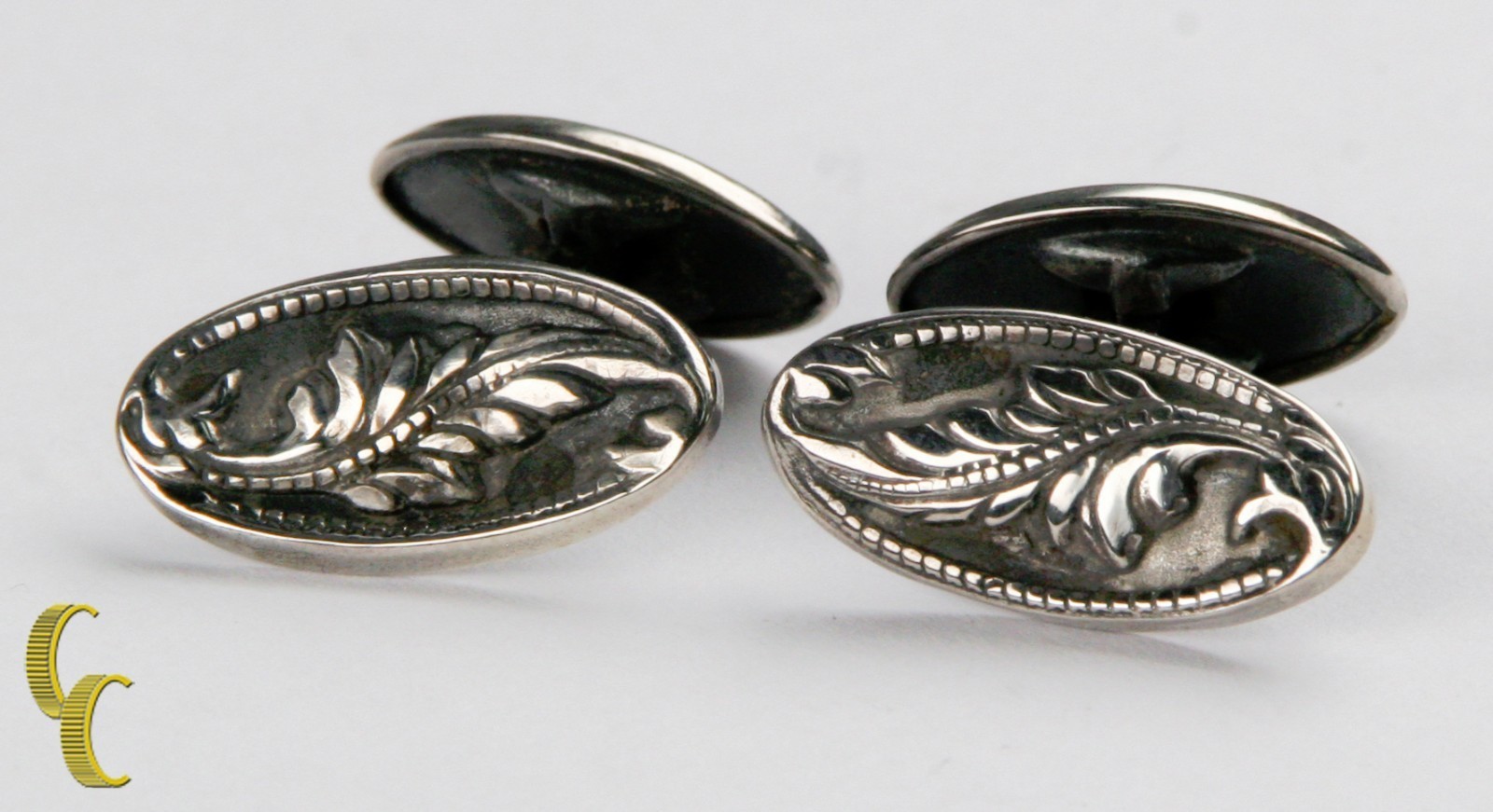- Men's Sterling Silver Cufflinks w/ Delicate Leaf Designs Nice Toning
