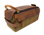 Handcrafted from premium quality leather and plaid canvas. Practical and easy to carry. Features one main zippered compartment along with one front exterior zippered compartment. Spacious enough to accommodate all your toiletries/cosmetics. Measures 8-1/2" L x 3" W x 5" H.