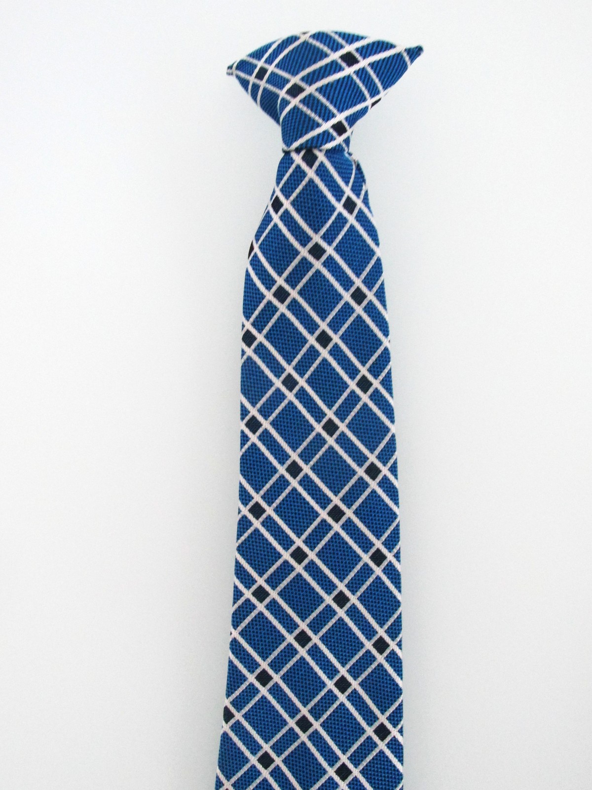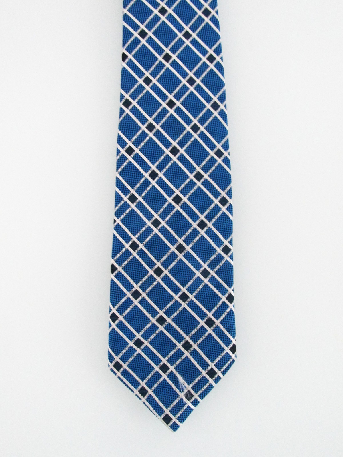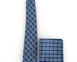 Description: Up for sale is a vintage men's clip-on tie with matching pocket square set. The tie is made of 100% polyester. The tie set has a multicolored check design in black white on a blue background. The tie measures approximately 16" long x 2 5/8" wide. The matching pocket square measures approximately 9" x 9". This clip-on tie set is in perfect condition