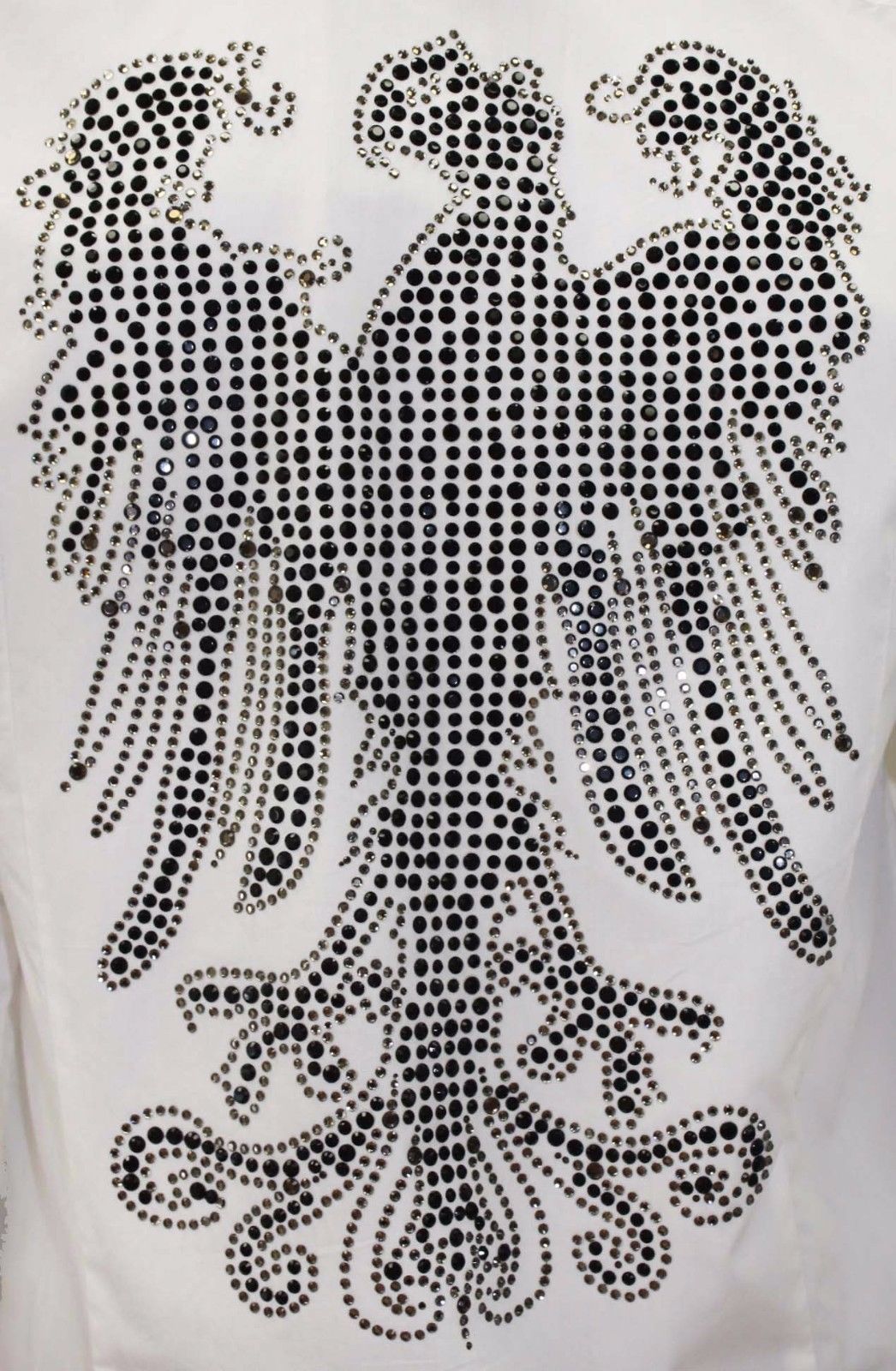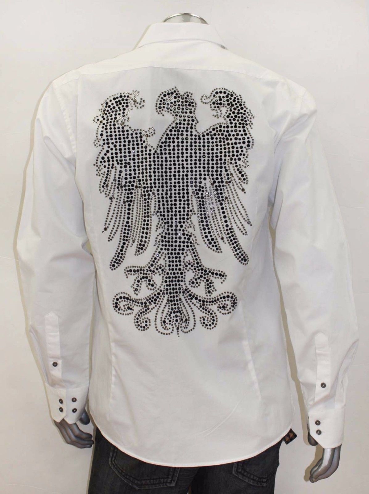 - Men's White Rhinestones Black Eagle Cross Long Sleeve Button Down Shirt