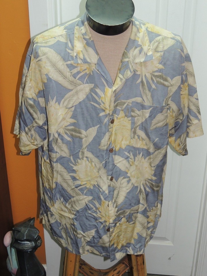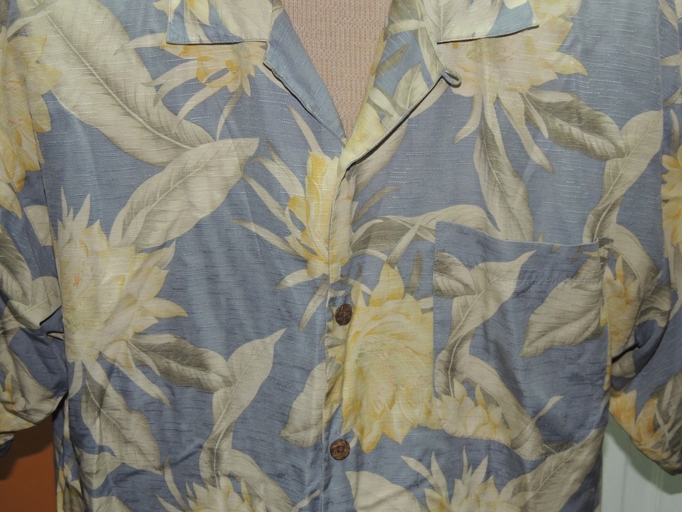 - Men's XL Tommy Bahama Short Sleeve Hawaiian Shirt 100% Silk BLUE GREEN tropical