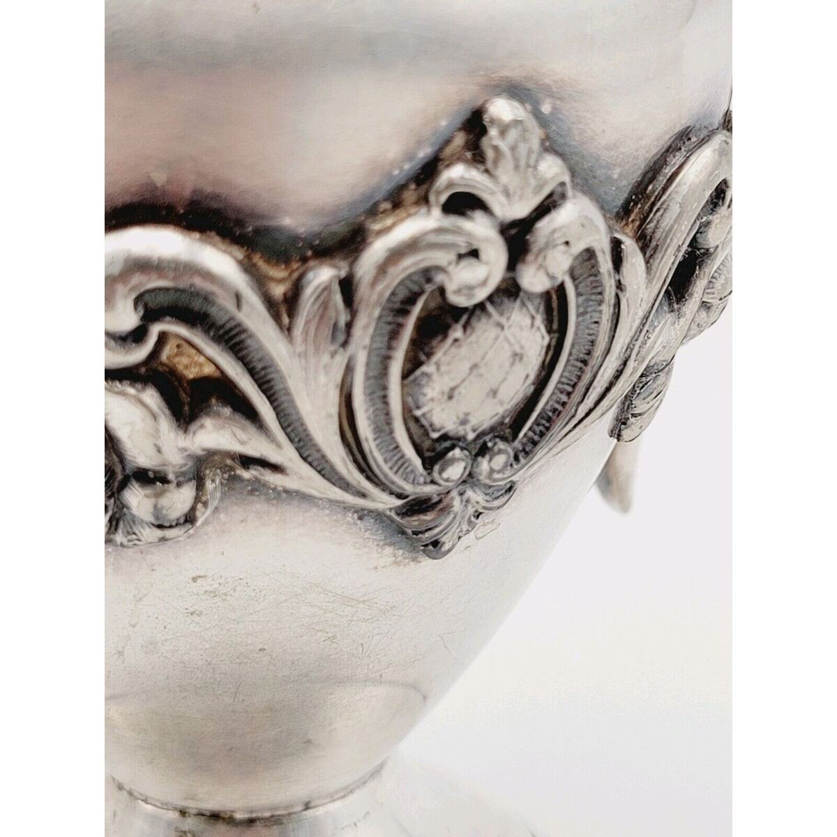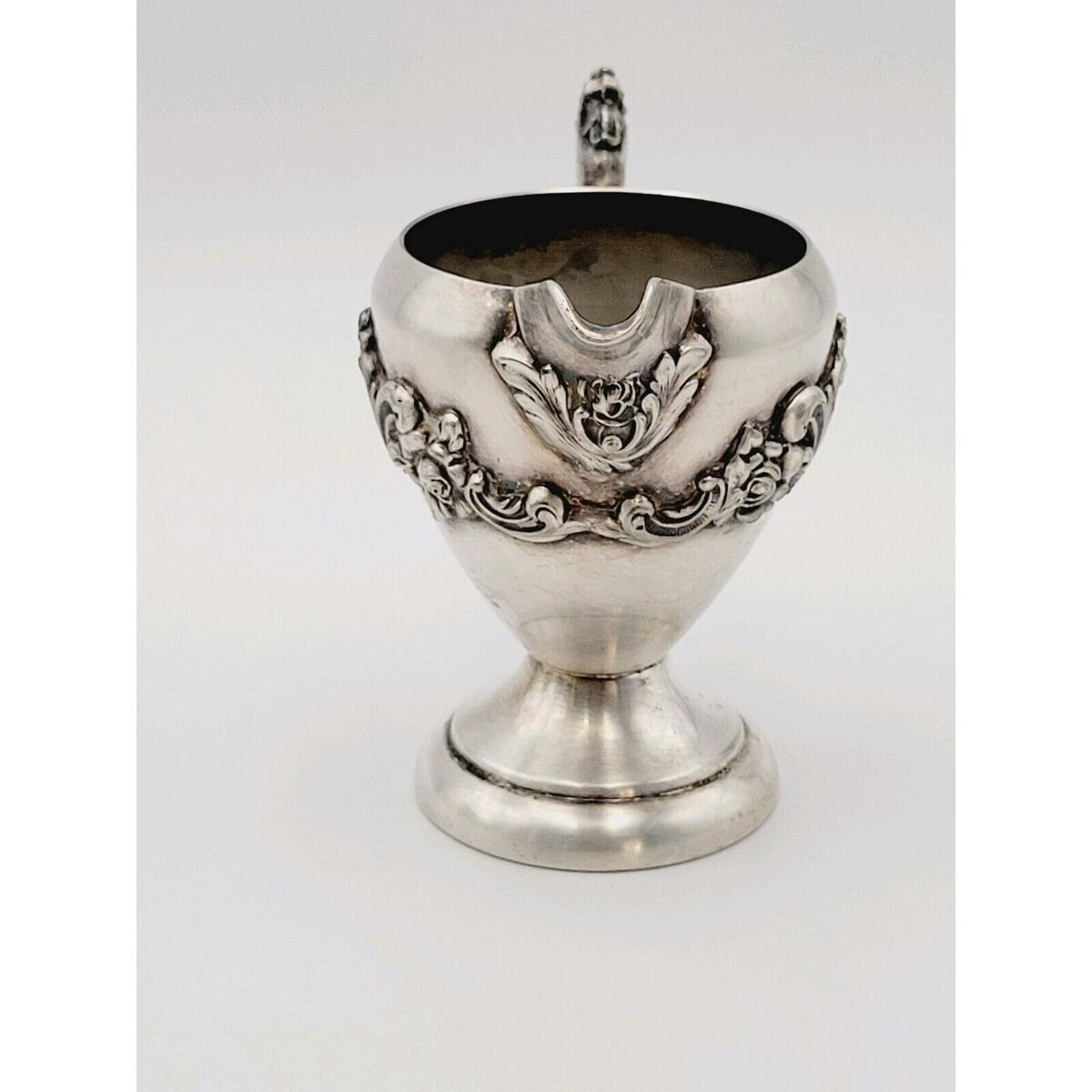 The Meneses Orfebres Silver On Copper Creamer Sugar Bowl with Lid is a vintage set from the 1950s, featuring an American Victorian pattern in silverplate. The pieces are designed in a Victorian style, showcasing intricate details and craftsmanship typical of the era. The creamer and sugar bowl are both finished in a silver color, adding a touch of elegance to any table setting. This unique set is a beautiful addition to any antique collection, reflecting the design trends of the early to mid-20th century.