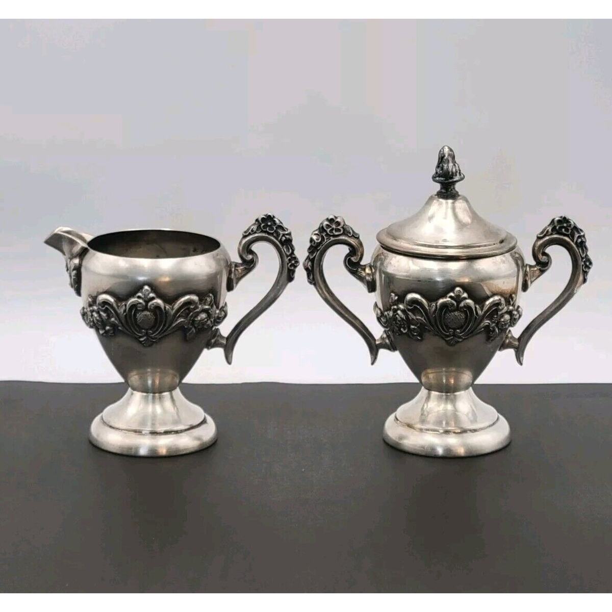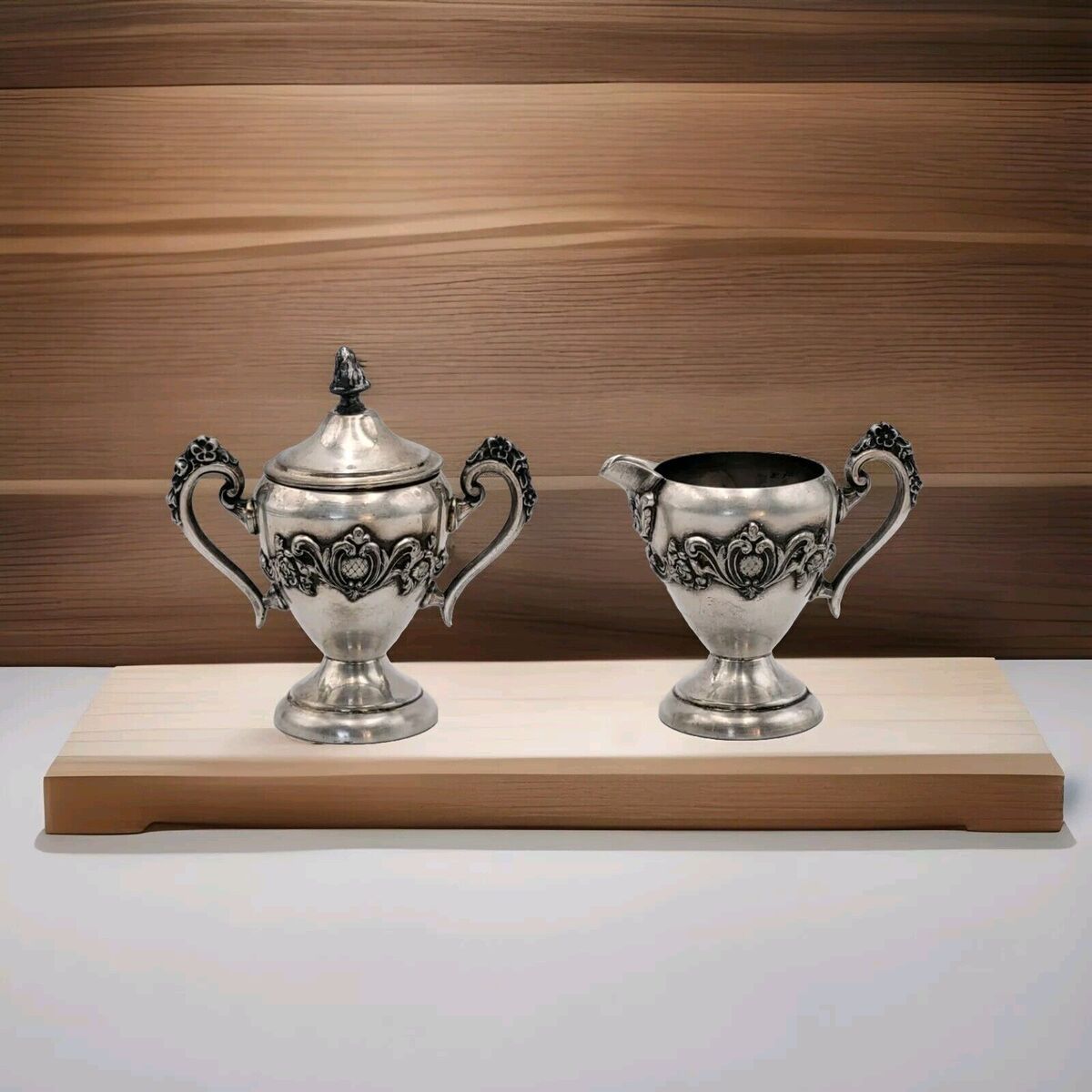 - Meneses Orfebres Silver On Copper Creamer & Sugar Bowl With Lid 50's Vtg Unique