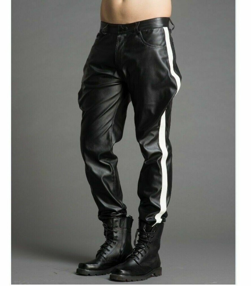 - MENS 501 LEATHER JEANS PUNK BIKER BREECHES PANTS TROUSERS BLUF CLUB STRIPES