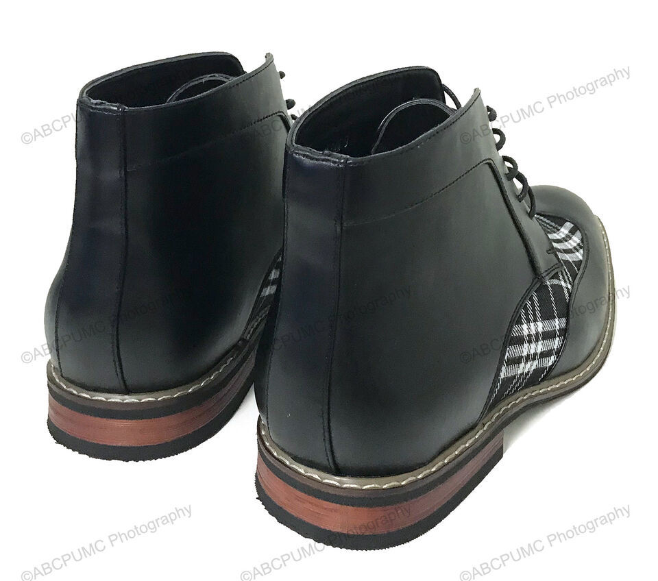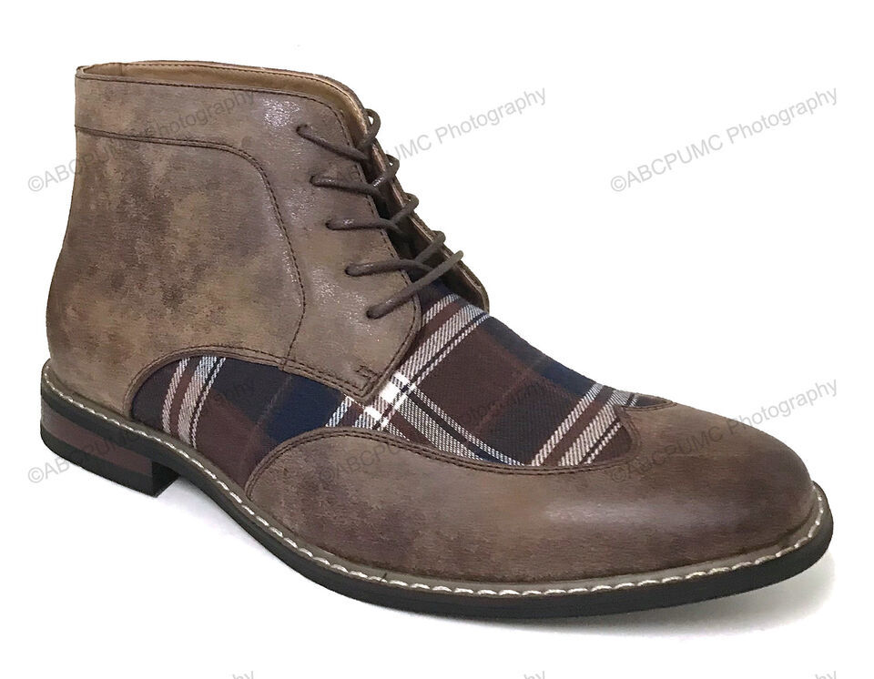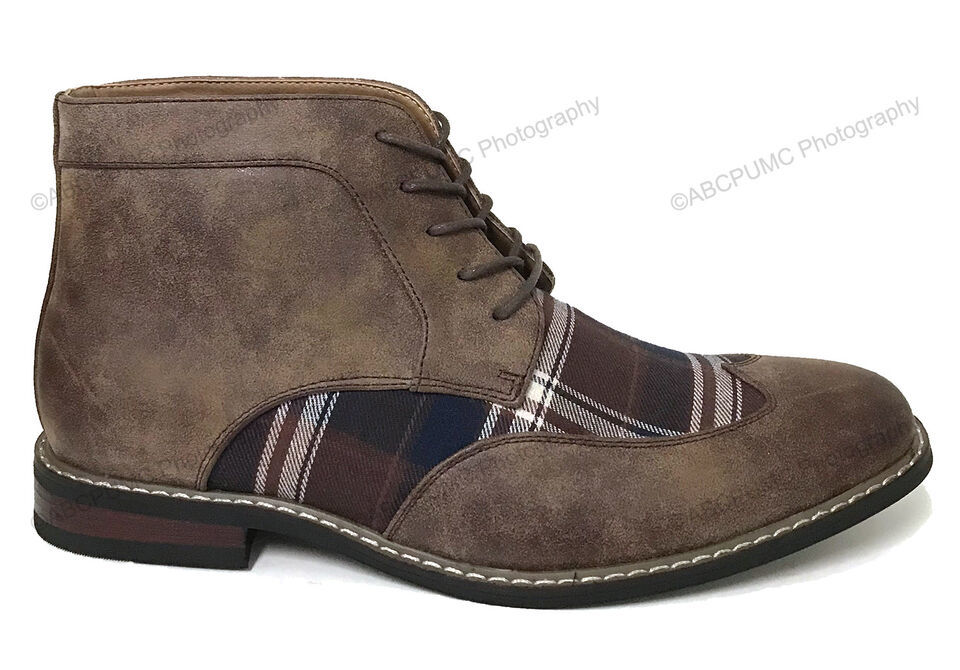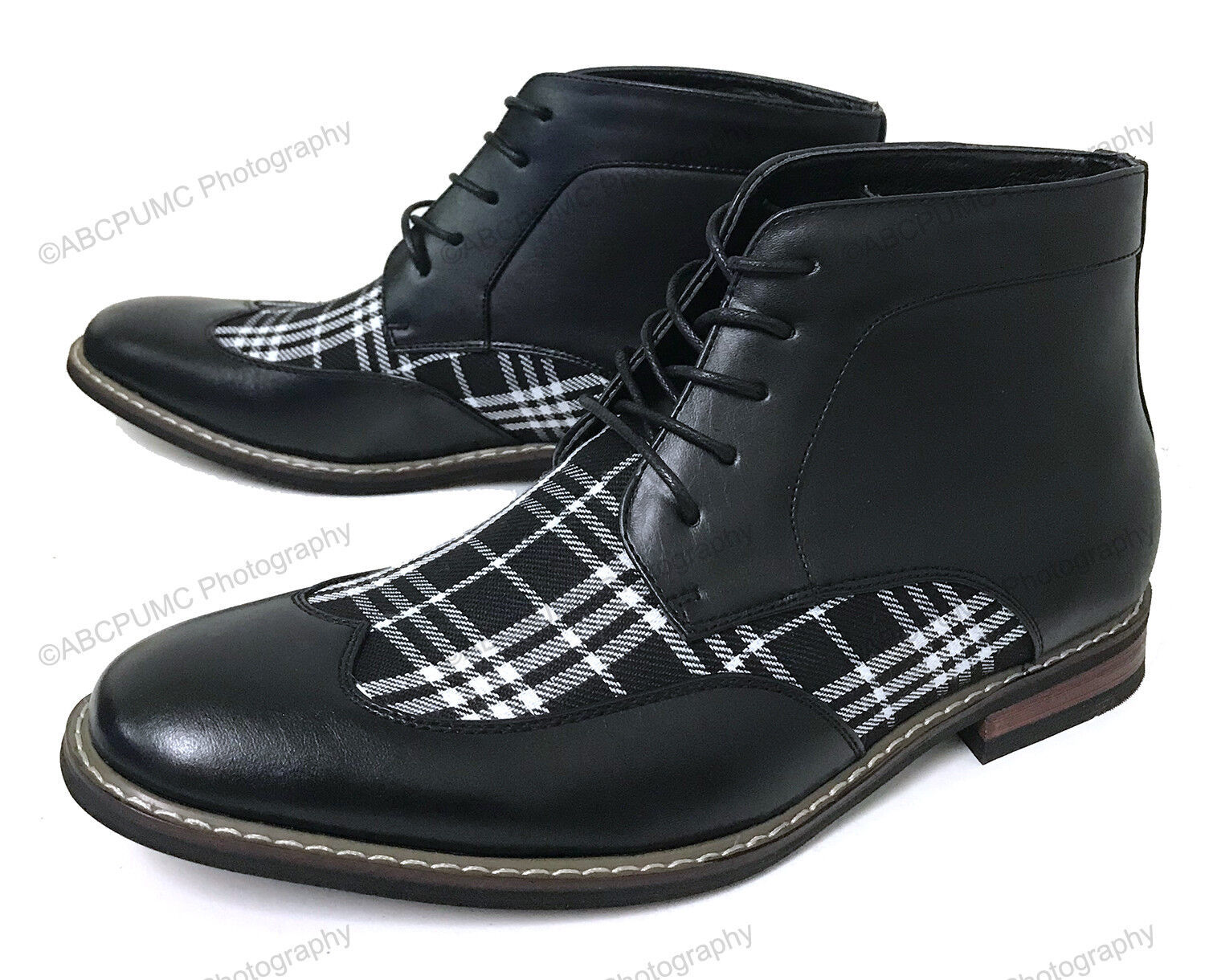 - Mens Ankle Boots Wing Tip 2-Tone Plaid Lace Up Leather Lined Oxfords Dress Shoes