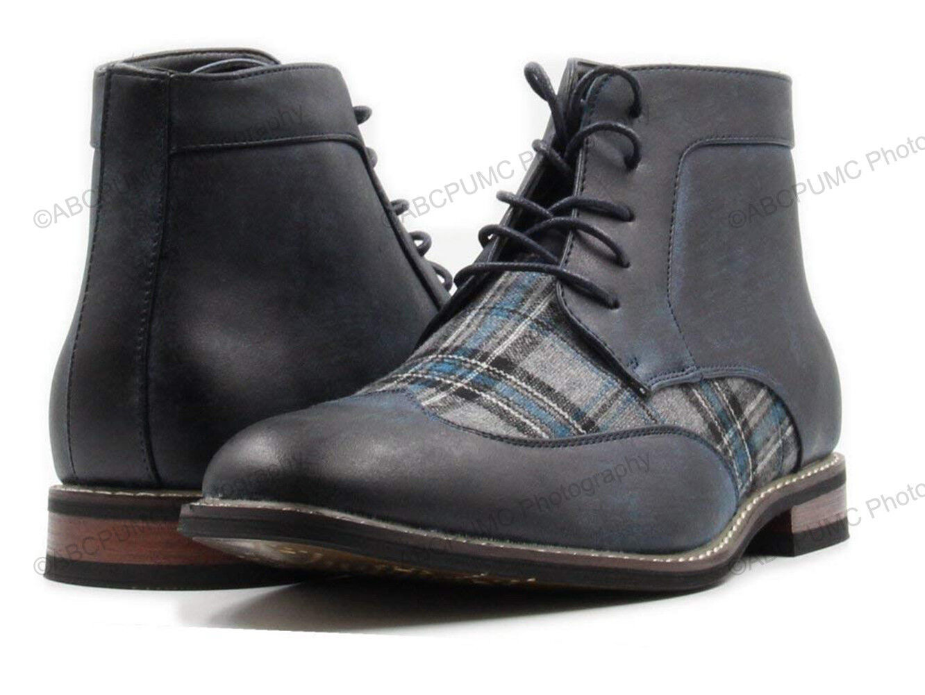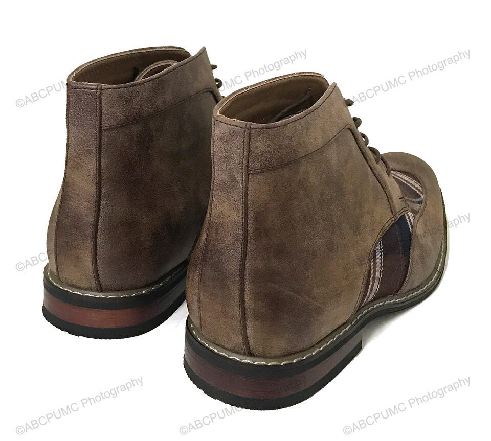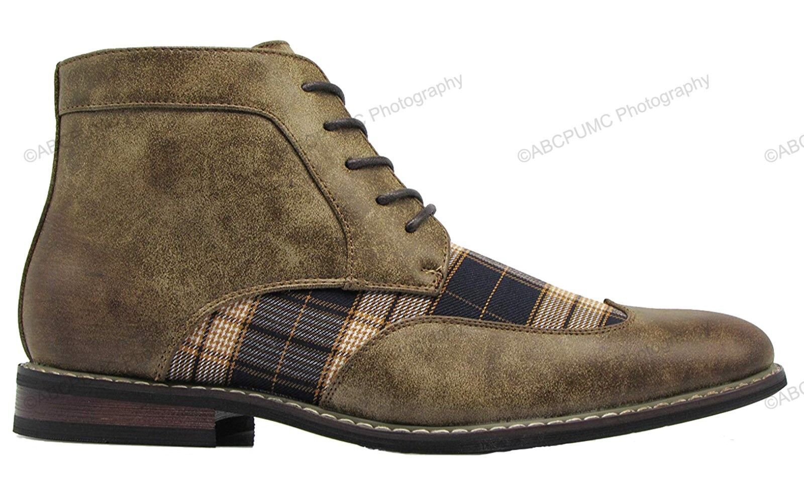 - Mens Ankle Boots Wing Tip 2-Tone Plaid Lace Up Leather Lined Oxfords Dress Shoes
