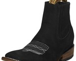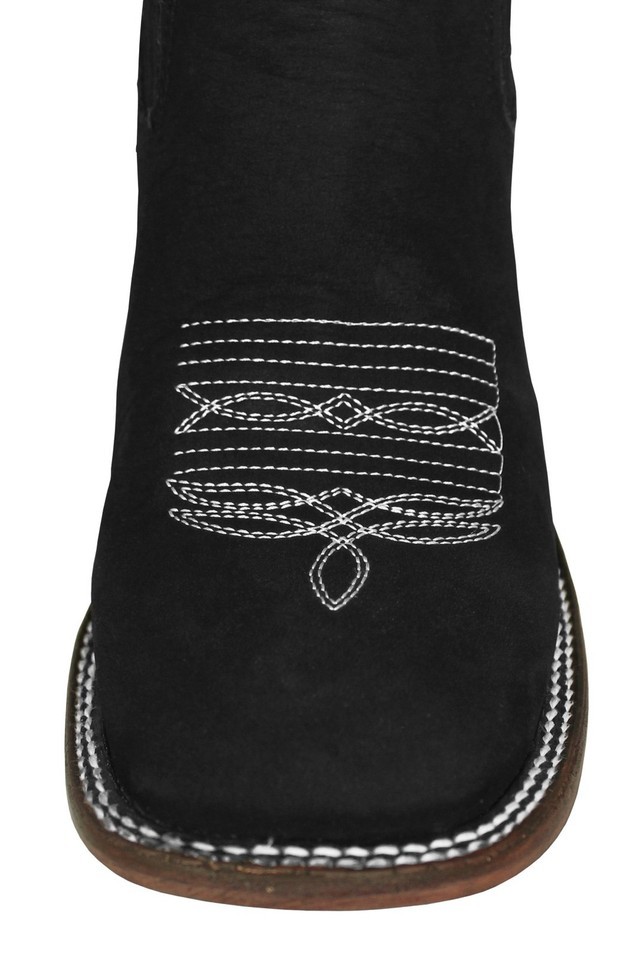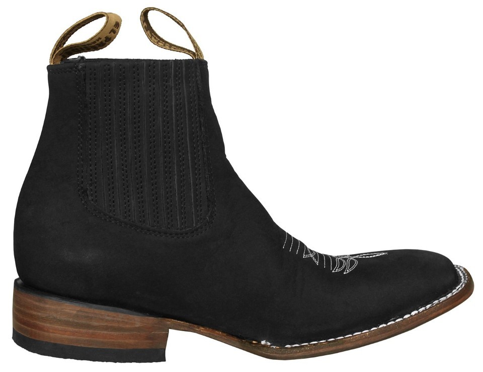 - Mens Black Ankle Boots Chelsea Nubuck Leather Square Toe Pull On Cowboy Dress