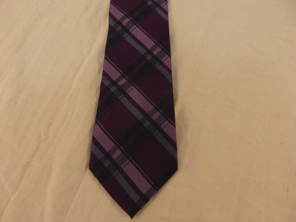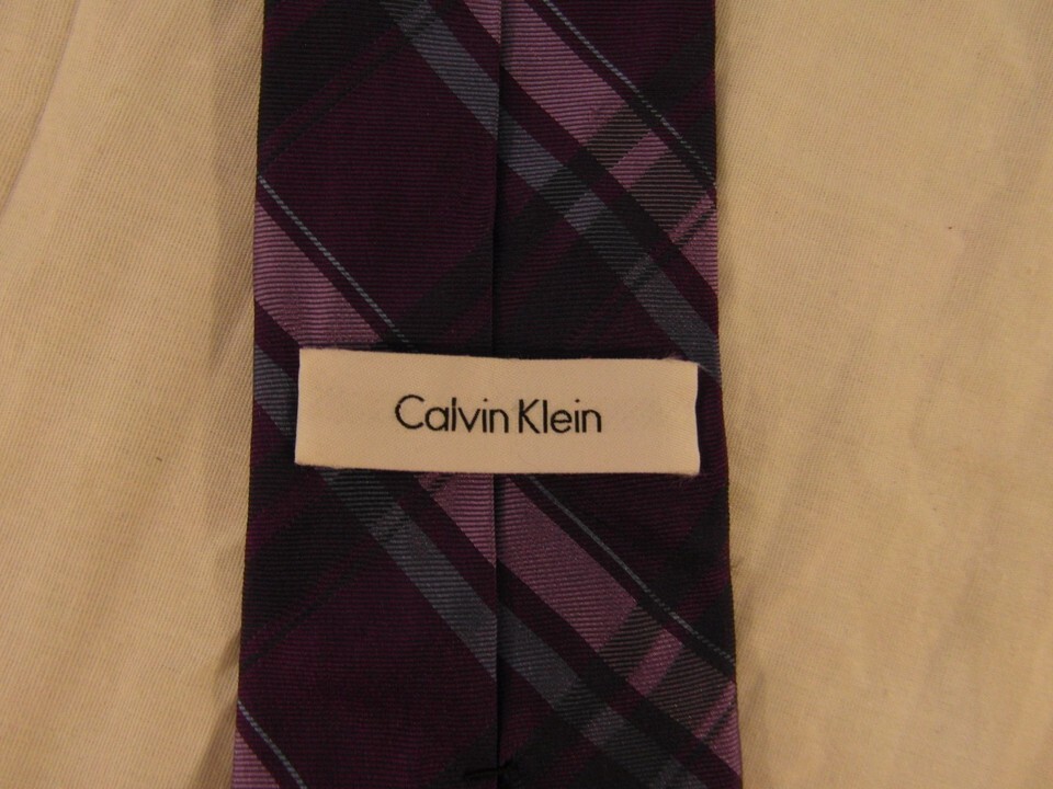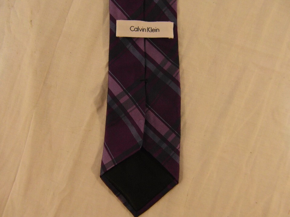 - Mens Calvin Klein Purple Blue Plaid Pure Silk Dress Formal Neck Tie