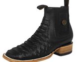 - Mens Chelsea Leather Ankle Boots Black Snake Print Western Dress Square Toe Bota