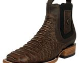 - Mens Chelsea Leather Ankle Boots Brown Snake Print Western Dress Square Toe Bota