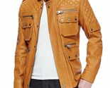 - Mens Genuine Tan Brown Leather leder Jacket Biker Harley Vintage Quilted Moto