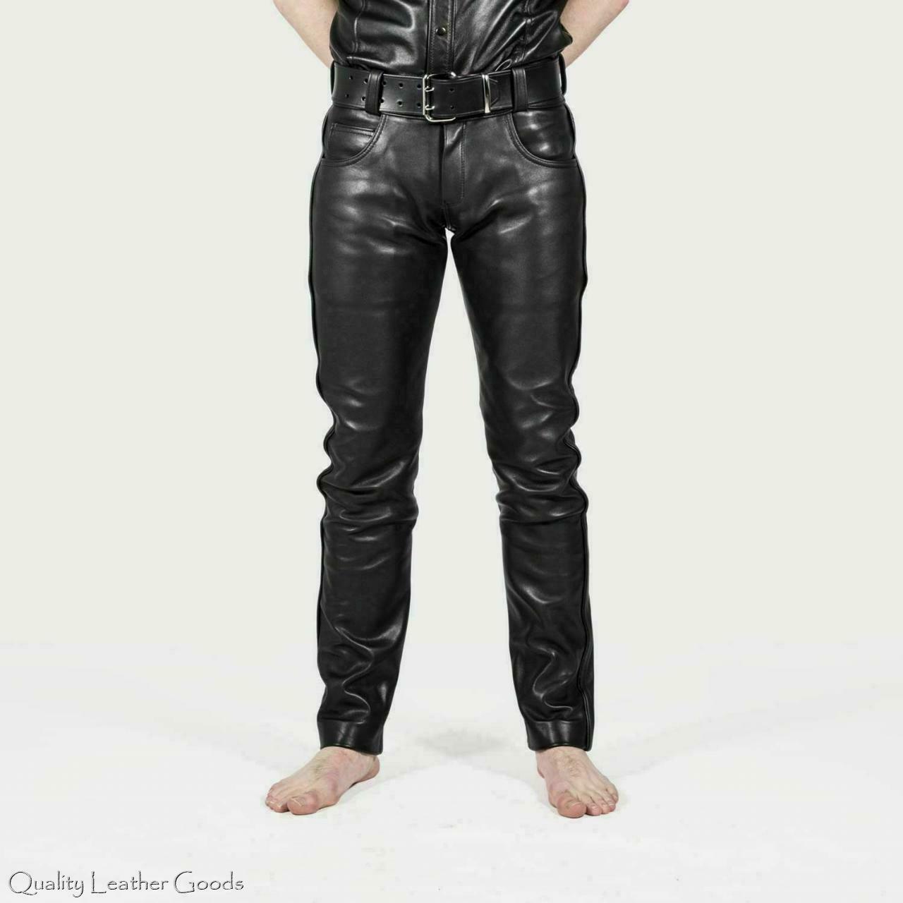 MENS LEATHER LEDER JEANS MOTORCYCLE BIKER BREECHES PANT TROUSERS 86 FN BLUF CLUB