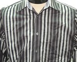 - Mens MED Bugatchi Uomo Long Sleeve Shirt 100% Cotton black silver gray Stripes