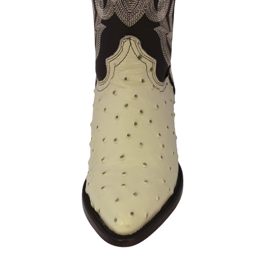 - Mens Off White Cowboy Boots Leather Ostrich Quill Pattern Western Wear J Toe