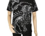 - Mens PLATINI Sports Shirt With Rhine Stones Lion Chain STT8022 Black Lion