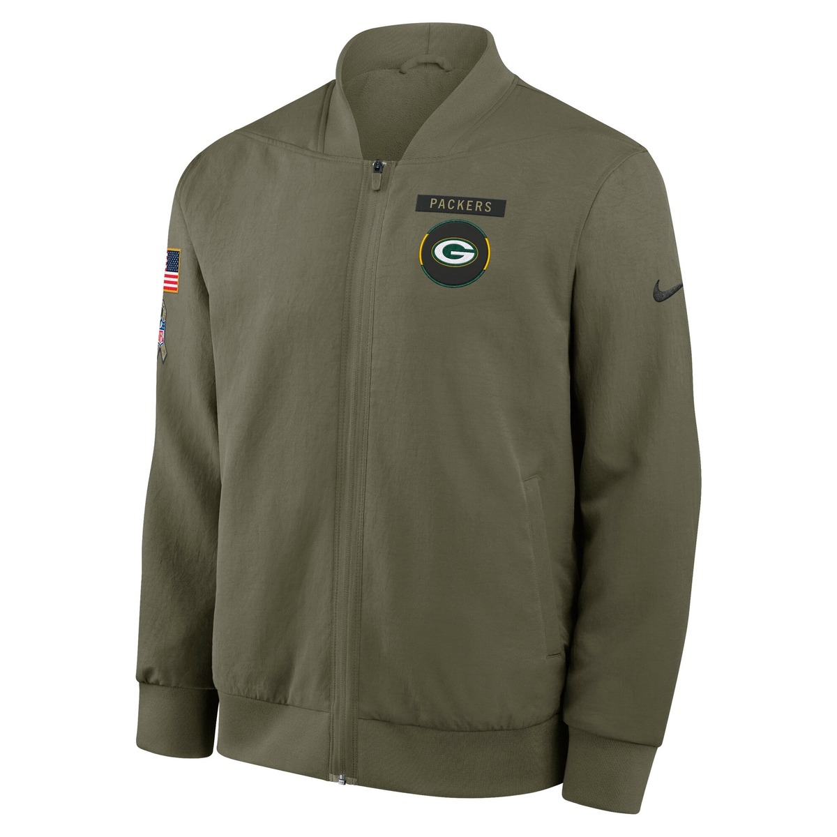 - Mens Packers Salute to Service 2025 Sideline Full-zip Bomber Jacket - Olive