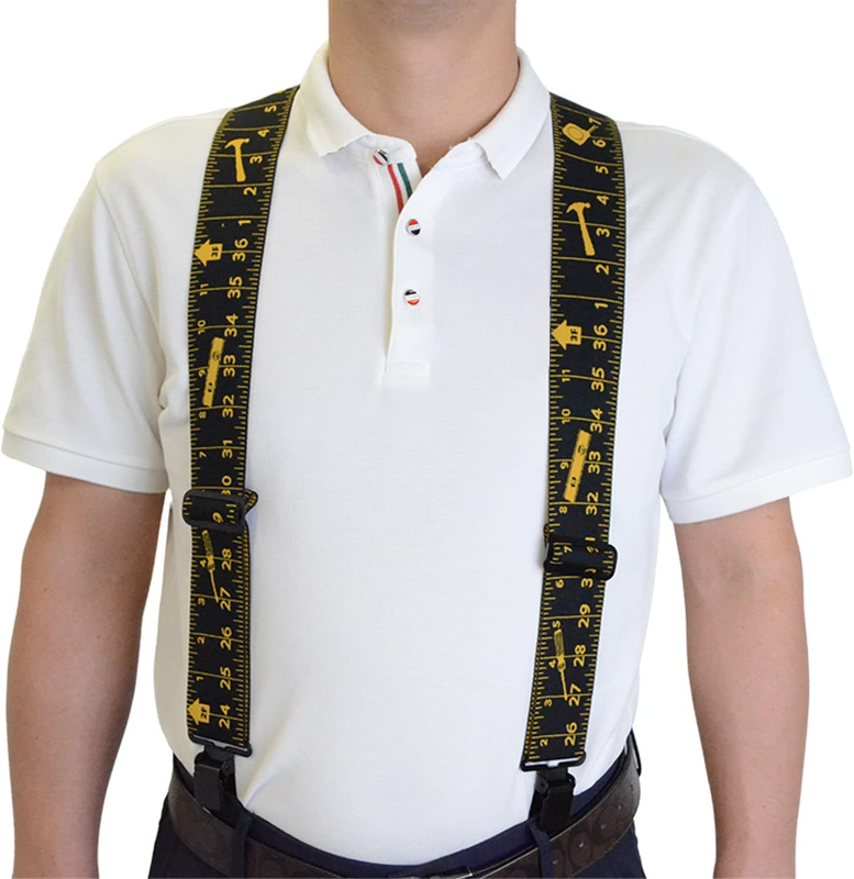 - Mens Tape Measure Suspenders, 2 Inch Wide Adjustable Work Suspenders for Tool Be