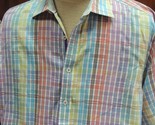 Mens XL Bugatchi Uomo Long Sleeve Shirt 100% Cotton multicolored Stripes Plaid