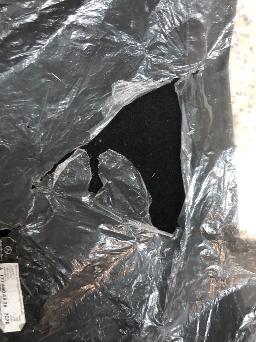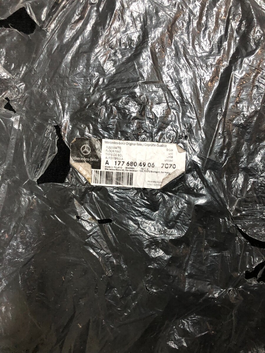 Original Mercedes Mats, die noch nie verwendet wurden. Immer noch neu im Plastik, aber der Plastik hat ein paar Locher gerissen.
